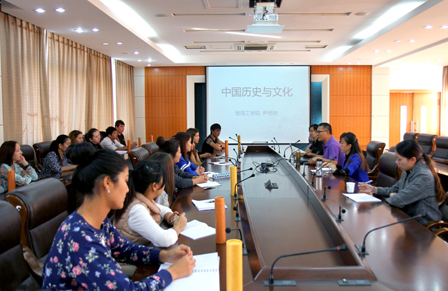 为了促进中亚留学生对中国历史与文化的深入了解,10月12日下午,国际交流与合作处邀请我校组织部部长尹德树在文渊楼会议室为中亚留学生作《中国历史与文化》专题讲座。 此次讲座主要包括三个方面,即中国历史发展概述、中国古代历史小常识以及中国古代文化艺术开展。尹德树首先从夏商周时期开始说起直至中华人民共和国成立,为留学生们简要概述了源远流长的中国近7000年的历史。在苏蔓老师的协助翻译下,留学生们非常认真地做笔记。接下来,尹德树又分别从天文历法、二十四节气、天干地支、八旗制度、古代礼仪祭祀、名号职官、阴阳五行八卦、四书五经、三纲五常、官吏选拔制度以及历代地名机构这几个方面为留学生们讲述中国古代历史小常识。通过幻灯片上图文并茂的展示也让留学生们更直观地学习与了解。许多学生纷纷用手机拍照学习。最后,尹德树对中国古代文字、文学、学术思想、史学、四书、书法绘画、音乐、科学技术等方面的详细介绍,留学生们对中国古代文化表现出了浓厚的兴趣。尤其在讲到中国古代诗人李白,科学技术中国古代四大发明时,许多留学生们都纷纷表示之前就已有所了解。 在尹德树老师系统且有条理的讲述下,留学生们对中国历史与文化有了进一步的深入了解,许多学生纷纷表示此次讲座受益匪浅。