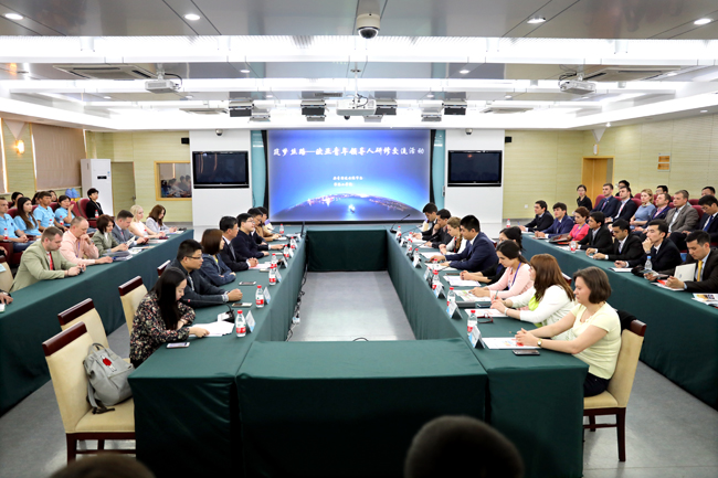 4月23日下午,来自俄罗斯、哈萨克斯坦、吉尔吉斯斯坦、塔吉克斯坦、乌兹别克斯坦、土库曼斯坦、白俄罗斯、乌克兰八国以及丝绸之路国际青年联盟青年代表共47人来到我校参观交流。