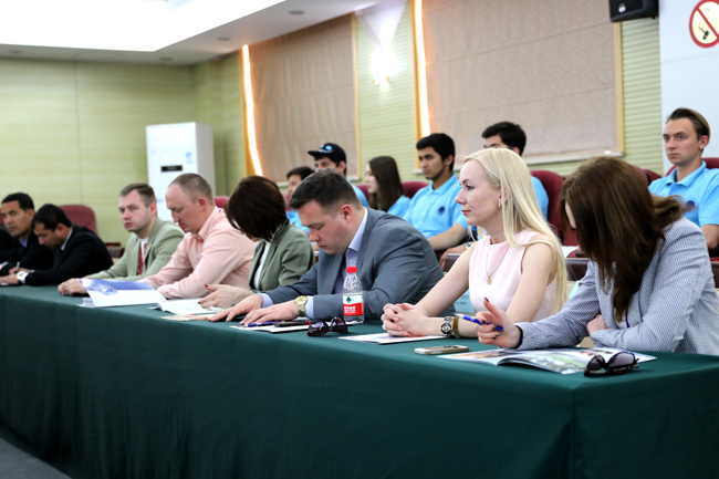 宾主双方在现场进行了热烈的交流。哈萨克斯坦代表团的团长乌捷舍夫·努尔兰(Uteshev Nurlan)表示,淮海工学院的水产养殖专业成绩突出,希望未来哈萨克斯坦的高校能够与淮工在水产养殖专业方面建立友好合作关系,共同进步。俄罗斯代表团的代表戈尔季延科·叶甫盖尼(Gordienko Evgeny)指出,语言的学习是了解一个国家文化最有益的学习,希望在未来有更多来自俄罗斯的留学生能够来到中国,来到淮工学习中国语言和文化,也欢迎淮工的留学生到俄罗斯高校学习交流。
