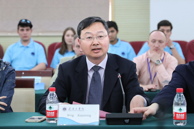 首先,宁晓明致欢迎辞,对各国远道而来的青年代表们表示了热烈的欢迎,简单介绍了我校的基本情况、优势学科、未来的发展方向等。他表示,我校位于“丝绸之路经济带”和“21世纪海上丝绸之路”交汇点—连云港市,一直以来积极响应“一带一路”倡议,坚持以对外开放和国际合作为突破,努力为区域经济社会发展和文化交流搭建高端平台。此外,宁晓明还介绍了我校招收的中亚留学生来我校的学习和生活情况。宁晓明还分别向来访的欧亚八个国家代表团代表赠送了纪念品并合影留念。