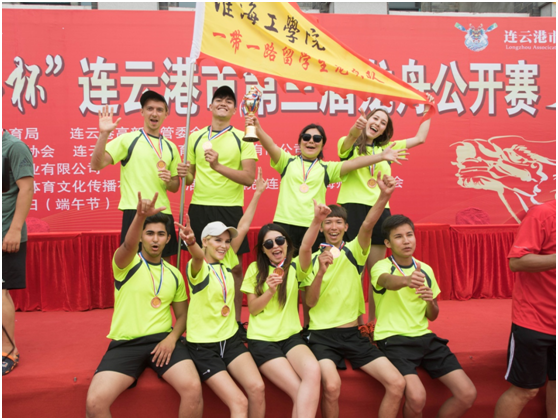 此次公开赛共有38支龙舟代表队,共570多名选手参加。由我校中亚留学生组成的“一带一路留学生龙舟队”和泰国留学生组成的“泰国留学生龙舟队”经过激烈征战,分别获得了300米直道赛学生组第三名和学生组优胜奖、道德风尚奖的好成绩。