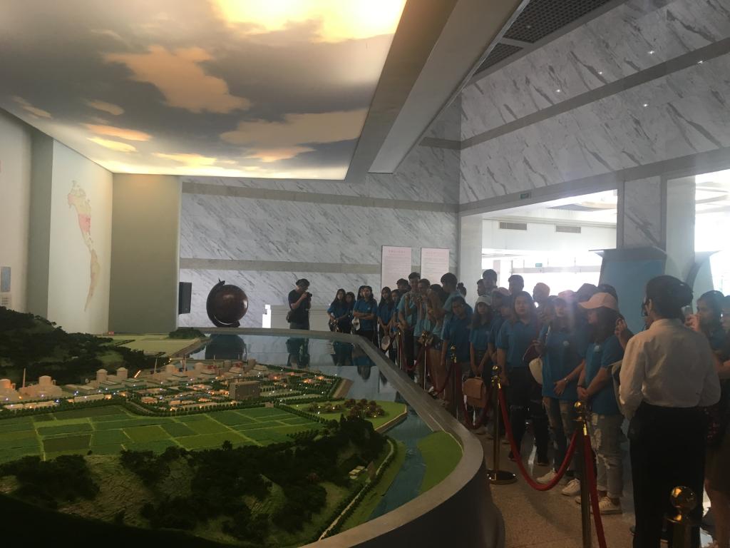 留学生们来到田湾核电站展示厅,通过观看视频短片了解了田湾核电站的建设历程,随后进入展厅内部,通过核电站整体规划模型,讲解员介绍了核电站的全貌及规划等,并带领留学生参观了展厅橱窗里的反应堆模型等各种设备模型,仔细讲解了核电站的相关原理,安全性和建设地点的选定等知识。留学生们纷纷表示领略到了中国在核能领域高科技的发展。来自俄罗斯的留学生大伟同学亲切地在中国和俄罗斯国旗中间拍照留念,并说到:“田湾核电站是中俄两国的合作项目,我希望在未来,中俄两国的友好合作关系可以一直延续下去”。