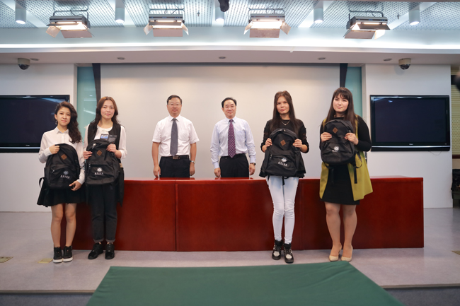 典礼上,宁晓明、陈中还向留学生赠送了学习用品。全体参会人员与留学生合影留念。