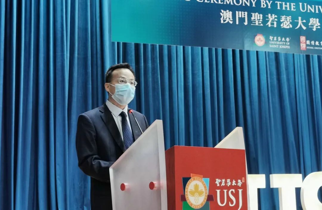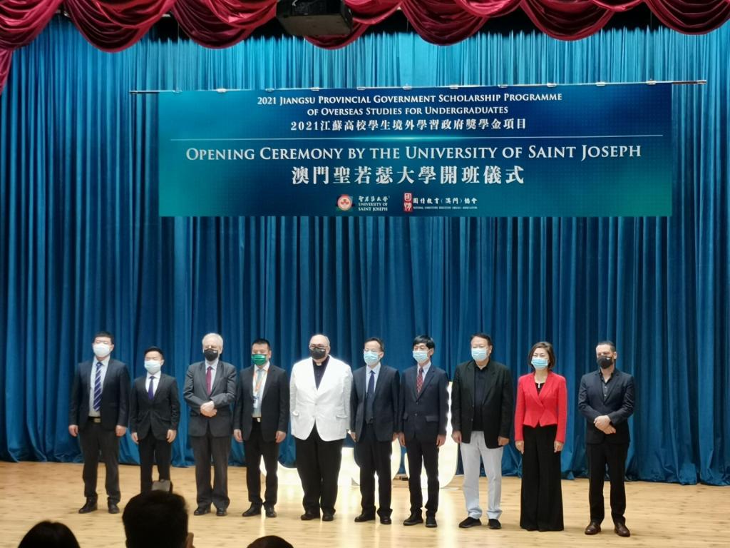 7月12日,我校首批6名学生抵达澳门参加在澳门圣若瑟大学举行的2021年江苏高校学生境外学习政府奖学金项目第一期开营仪式。澳门中联办教育及青年工作部代表李咏乐先生、澳门特区政府及青年发展局副局长丁少雄、海峡两岸关系协会澳门办事处主任王刚、圣若瑟大学校长麦侍文、澳门江苏联谊会会长岑展平、澳门中华优秀传统文化协会会长陈志玲、国情教育(澳门)协会会长王海涛等有关领导和嘉宾出席开营仪式。江苏省港澳台教育交流中心副主任郑兴出席仪式并致辞。