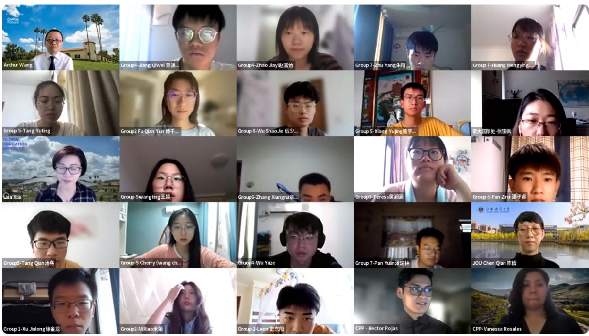 8月25日上午,在师生们的共同努力下,为期10天的美国加州州立理工大学(波莫那)大学生创新创业领导力在线培训项目圆满完成。结业仪式由Arthur Wang主持,美国加州州立理工大学(波莫那)延展教育学院全球教育交流学院主任Lisa Xue、江苏海洋大学国际交流与合作处处长韩小杰以及参加培训的28名优秀学生参加了结业仪式。