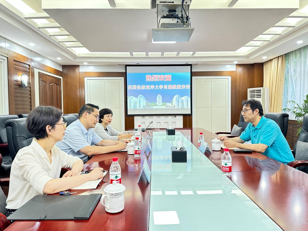 6月28日下午,英国伦敦南岸大学肖蓬教授访问我校,校长宁晓明、副校长申欣分别在行政楼二楼接待室、会议室会见了肖蓬教授,国际交流与合作处相关人员陪同会见。