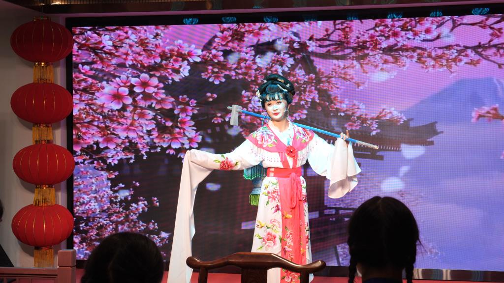 演出期间,连云港市演艺集团青年演职人员还现场教授外国师生穿戏服及简单戏曲招式,带领外国师生们亲身体验中国传统戏曲文化的独特魅力。
