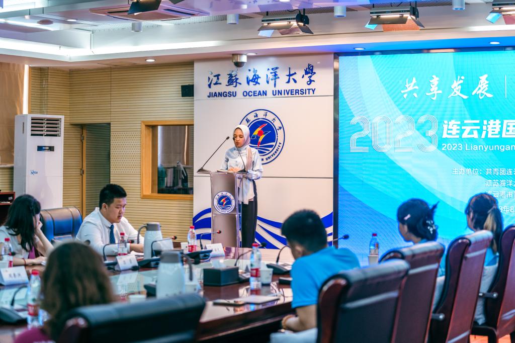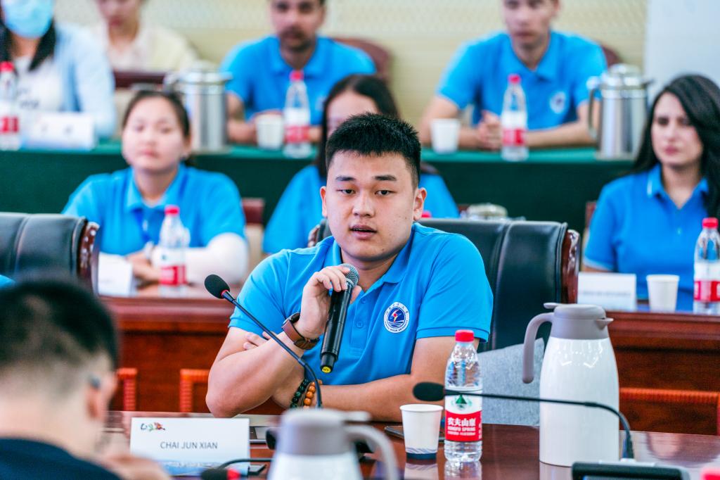 连云港市新亚欧大陆桥国际人才交流活动学员,来自哈萨克斯坦阿斯塔纳国际大学中哈经贸学院的学生SAGIDULLINA ARUZHAN、来自中国驻亚历山大总领事馆的文秘MOSTAFA NADA、来自马来西亚砂拉越大学的学生蔡焌弦以及我校在校留学生HIND BOUALIS围绕“青年如何发力“一带一路”高质量发展”“以共情力联结国际朋友圈”“青年应具备的国际视野和全球竞争力”等主题进行了重点发言。连云港市新亚欧大陆桥国际人才交流活动部分学员代表还现场和与会青年围绕“青年如何在国际交流中发声”进行了深入交流。