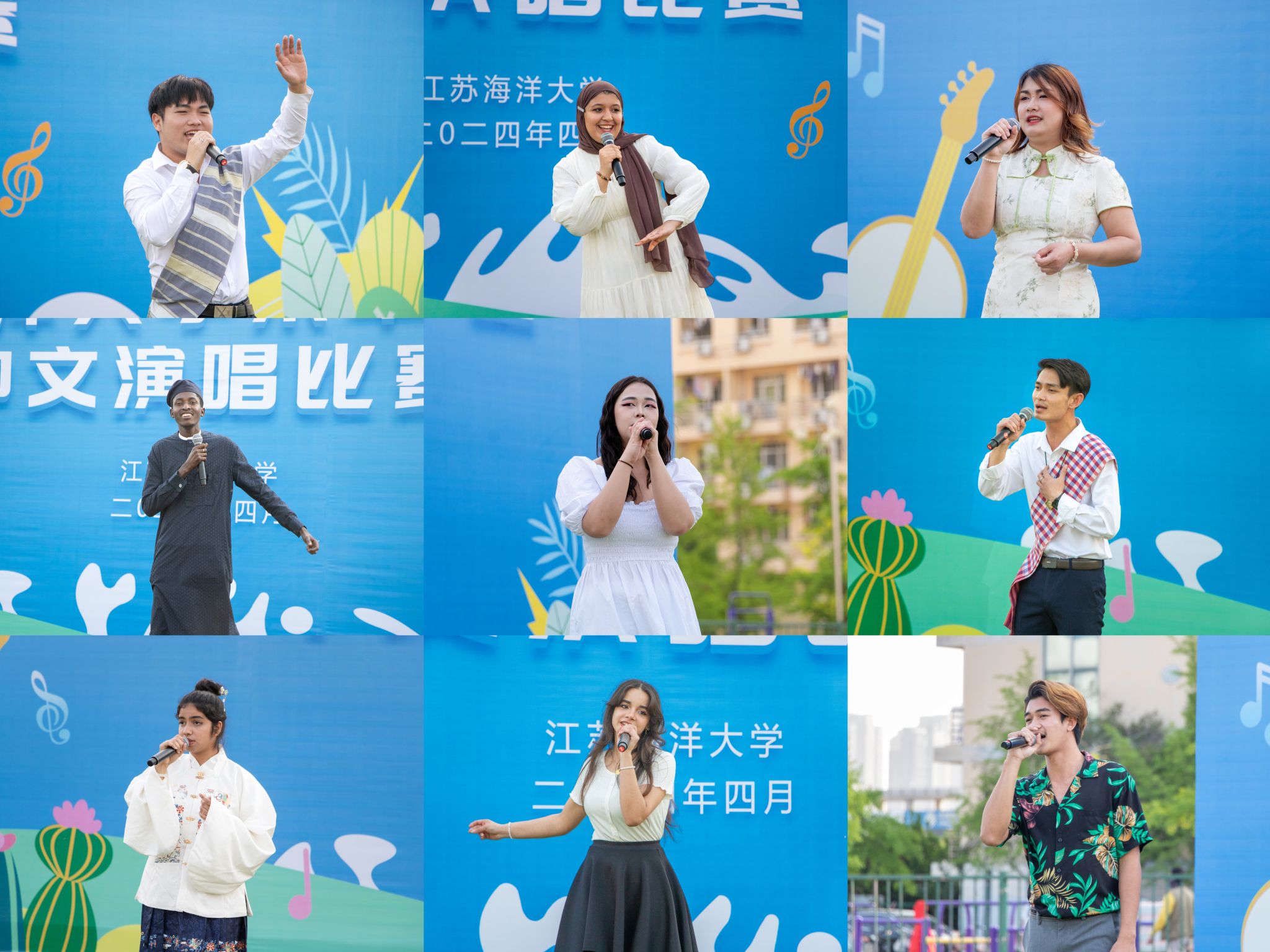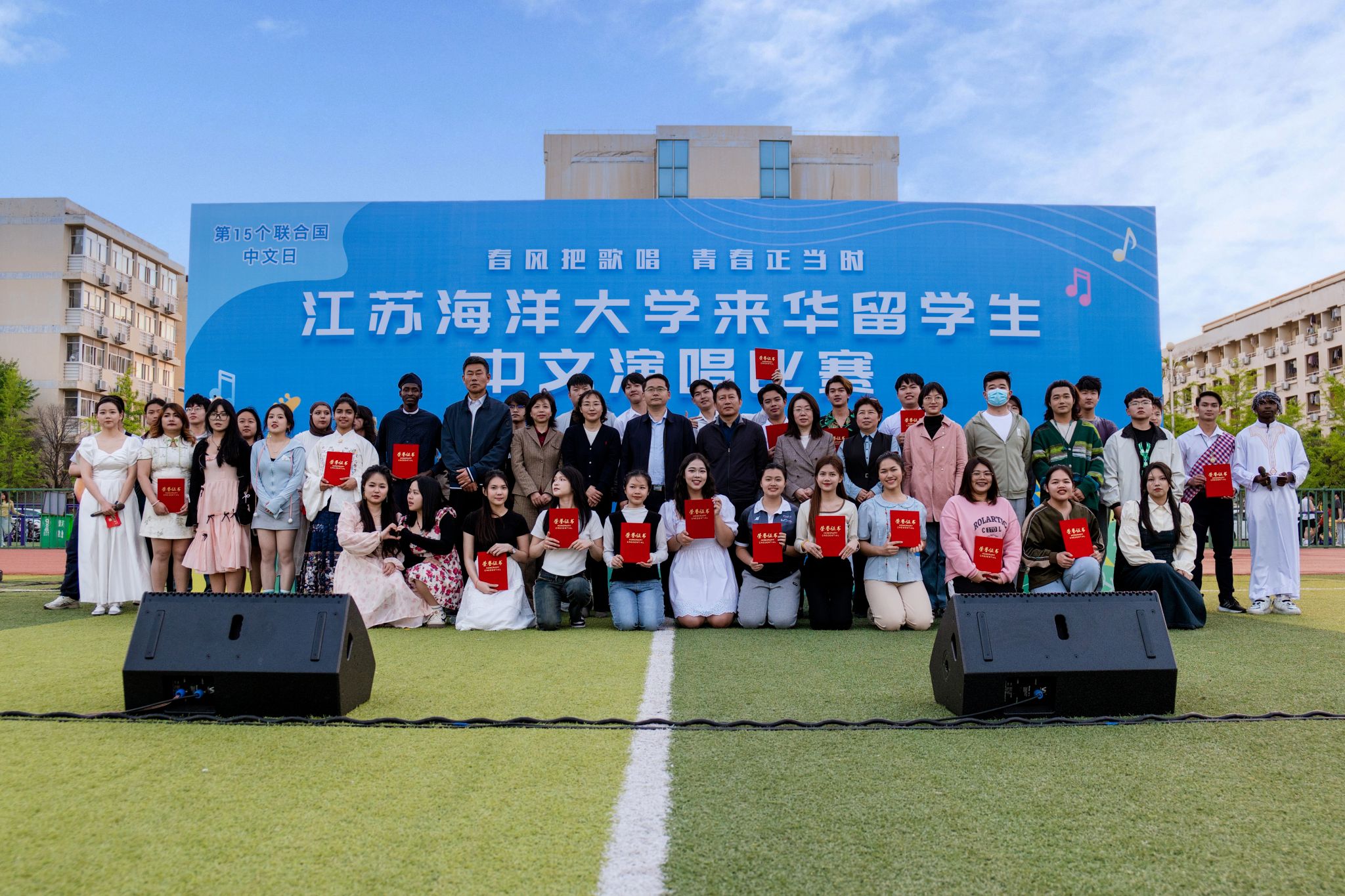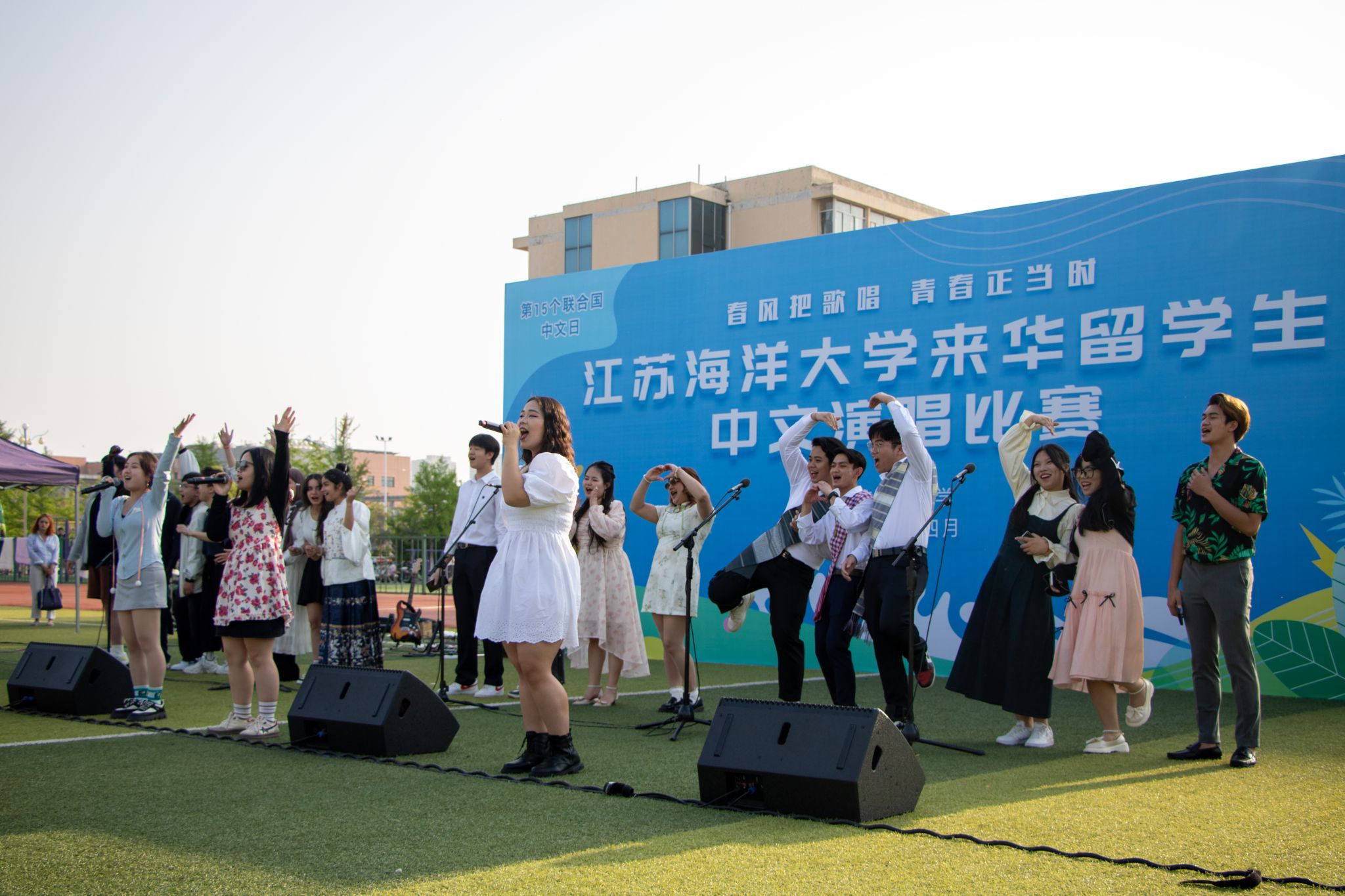 4月18日下午,“春风把歌唱青春正当时”来华留学生中文演唱比赛在学校西操场举行。副校长申欣出席活动,市外办、市教育局、市电视台以及我校党委宣传部、团委、外国语学院相关负责人应邀出席活动。来自5个国家的10名(组)留学生选手先后登台献唱中文歌曲,近三百余名中外师生到场加油助威,活动现场热闹非凡。来自摩洛哥的伊欣乐同学以一首《如愿》拉开了比赛序幕,选手们台风稳健,深情演绎,整场比赛高潮迭起,精彩纷呈,掌声不断。最后,留学生与大学生艺术团、艺馨艺术团以一首合唱《Forever Young》为比赛画上了圆满的句号。现场嘉宾为本次系列活动所有获奖选手进行了颁奖。