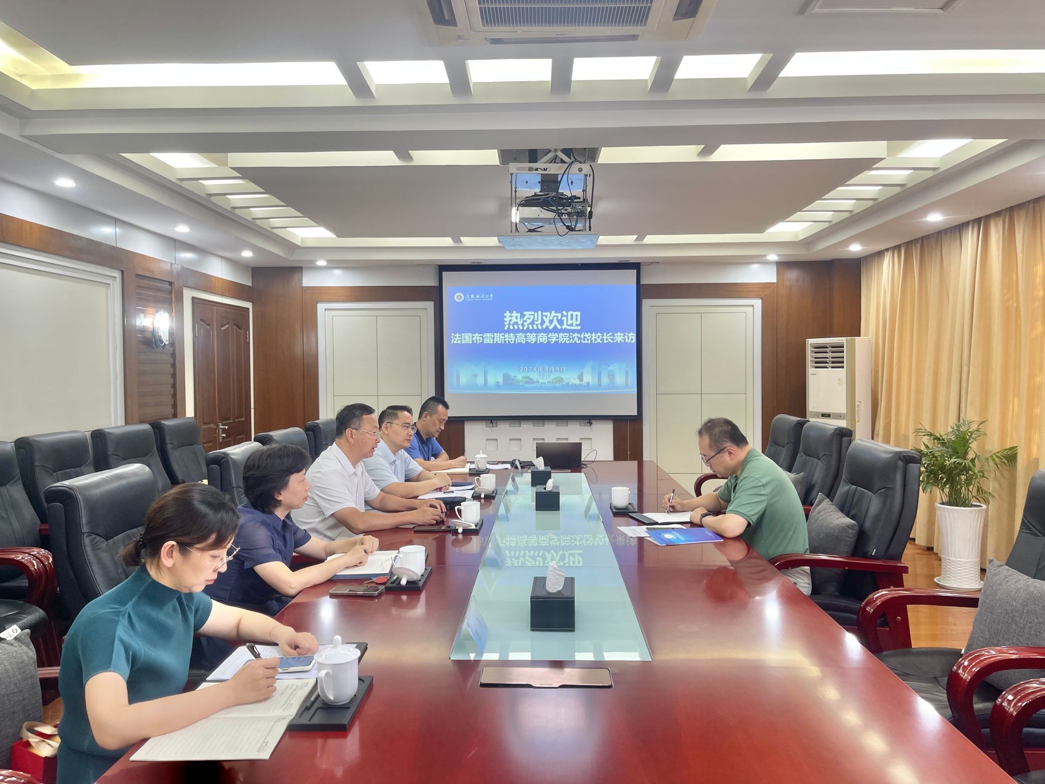 8月9日下午,法国布雷斯特高等商学院沈岱校长访问我校,就两校可能开展的合作项目进行交流座谈。校长宁晓明、副校长申欣出席座谈会,国际交流与合作处、商学院相关负责人参加座谈会。座谈会由副校长申欣主持。