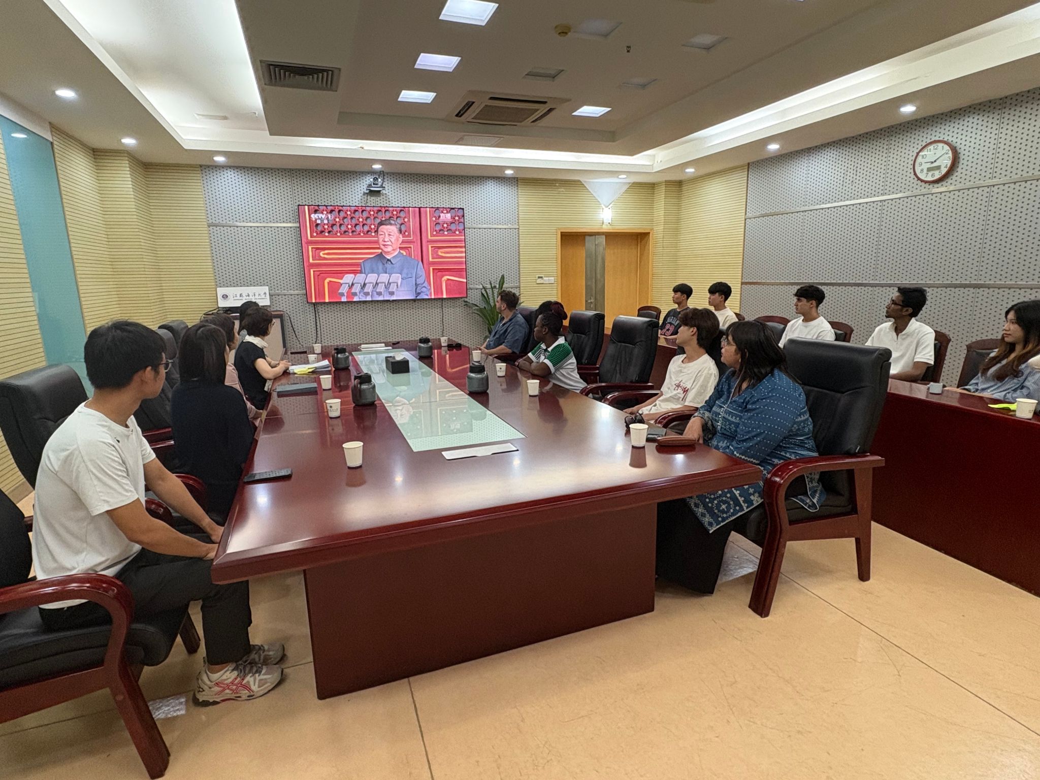 9 月 3 日上午,纪念中国人民抗日战争暨世界反法西斯战争胜利 80 周年大会在北京天安门广场隆重举行,我校国际交流与合作处积极组织留学生代表集中收看现场直播,共同感受中国抗战精神与维护和平的坚定力量。