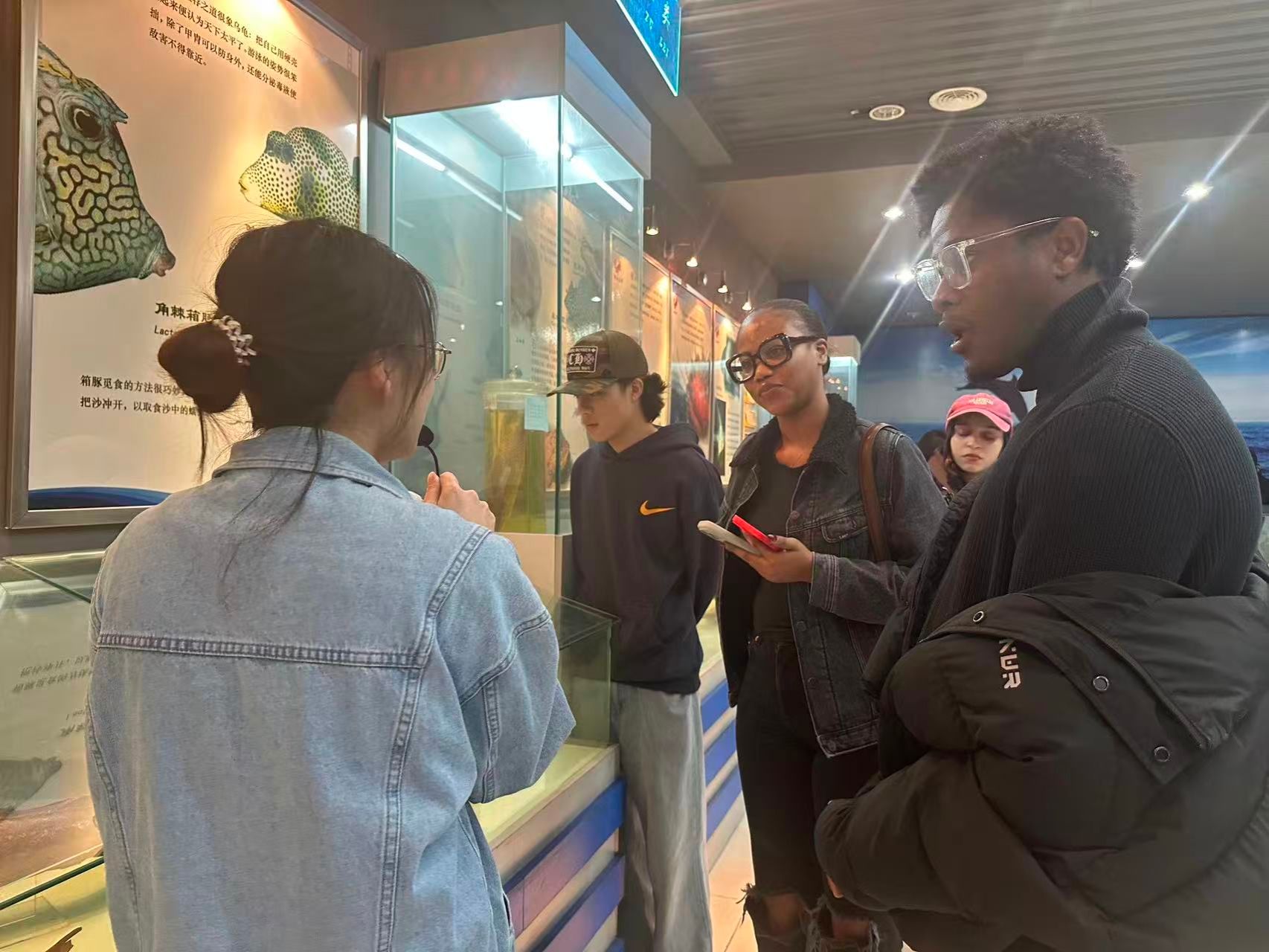 在图书馆工作人员的演示下,留学生们学习了借阅规则、检索系统与馆藏资源,以及自助设备的使用方法。在海洋馆讲解员的介绍下,留学生们学习了海洋生物知识,进一步增强了对校园海洋文化的认识。